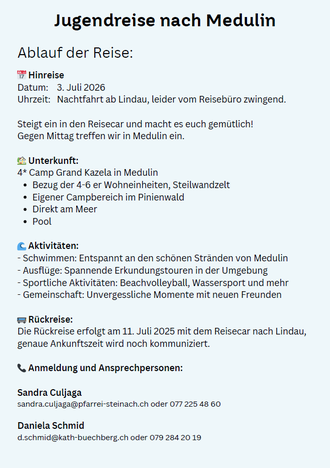 Aktuelle Infos zu Angeboten im Bistum findest du auf www.daju.ch