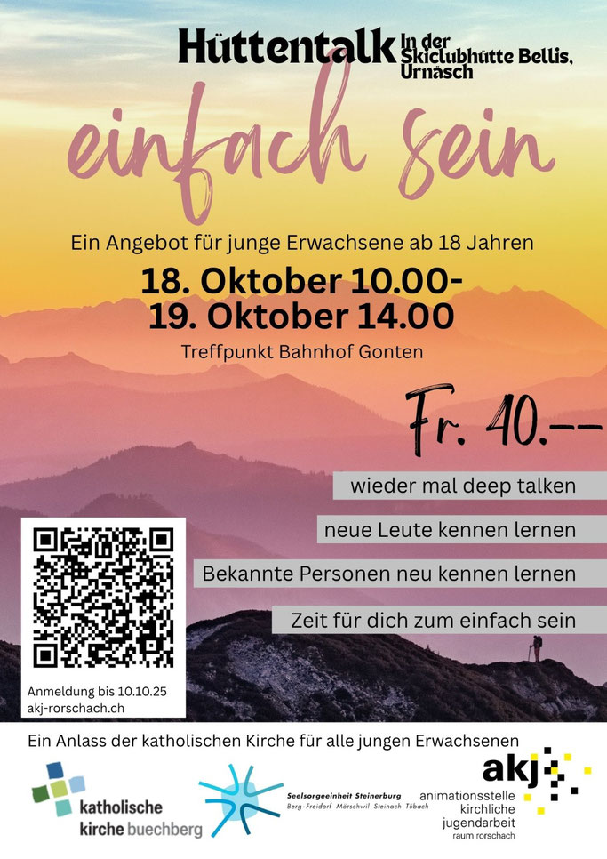 Vom 18. - 19.10.2025 findet der Hüttentalk statt. Wir gehen gemeinsam wandern und verbringen eine Nacht in der Skiclubhütte Bellis bevor es am nächsten Tag wieder nach Hause geht.